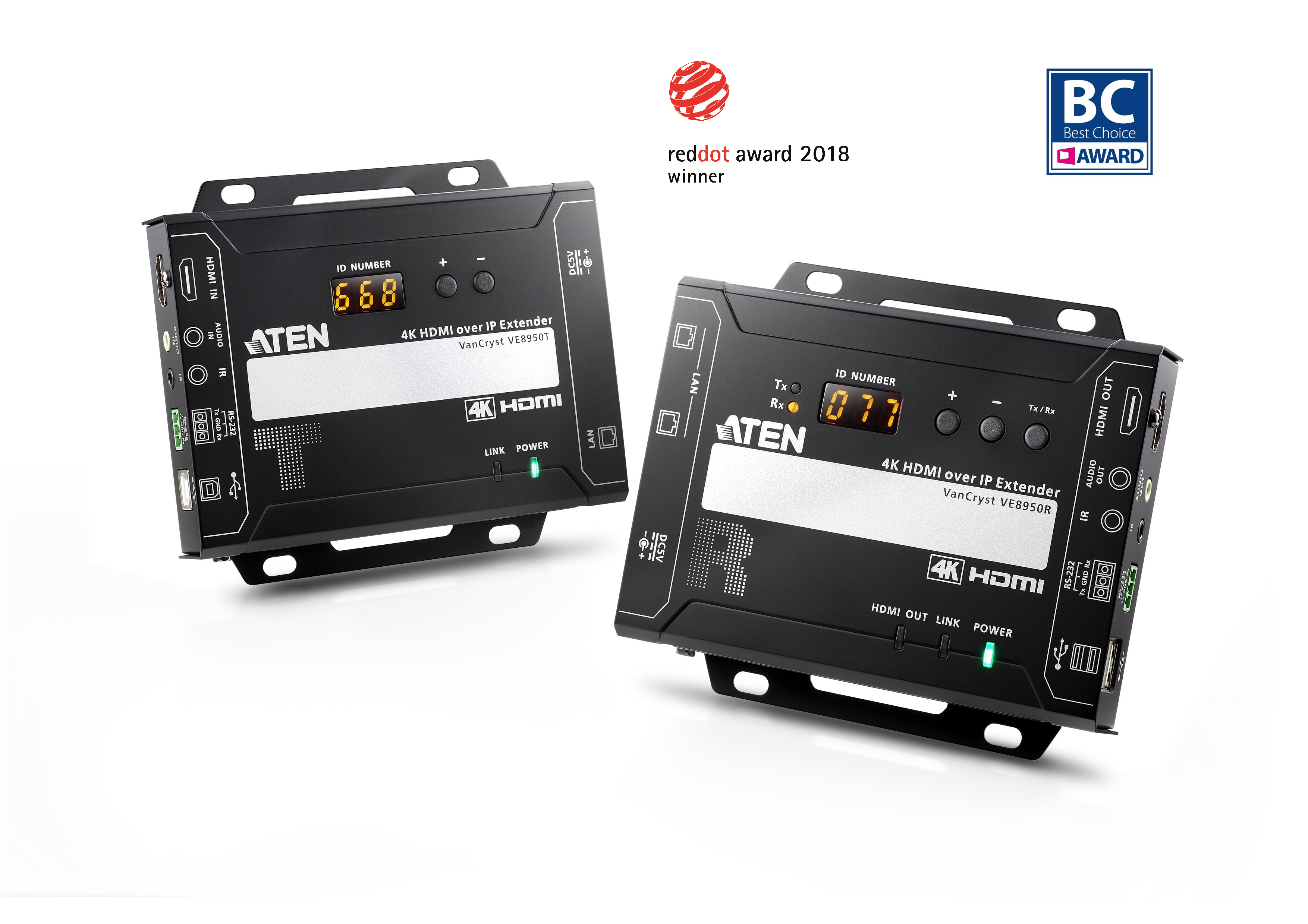 The winning VE8950 has also recently been honored with a Red Dot Design Award 2018 for its human-centered design and effortless user experience. It won high praise for enabling systems integrators to solve problems while creating solutions for large-scale digital signage and video wall deployments covering hundreds of meters, such as campuses, stations, malls, and exhibition centers. These two accolades for the VE8950 are recognition of ATEN’s continuous efforts in innovation through human-centered design.