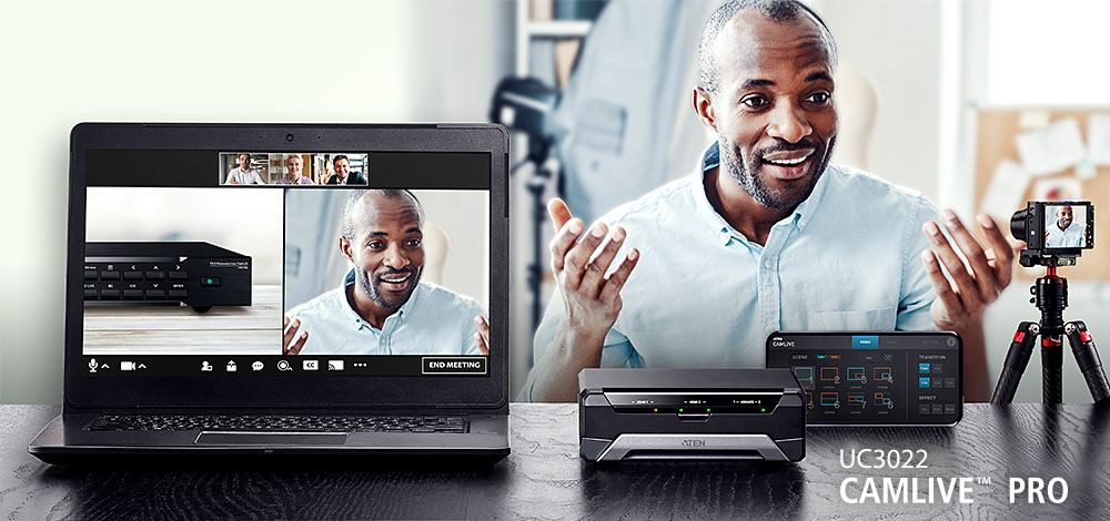 Sydney, Australia - July 2020: ATEN International, the leading provider of AV/IT connectivity and management solutions, has launched the UC3022 CAMLIVE™ PRO, a device designed to easily capture and mix two connected 4K cameras for 1080P live streaming. This device enables streaming to a worldwide audience, with outstanding video effects and remarkable image quality. With demand for video conferencing on the rise, this provides an easy-to-use solution for live streams, online conferences, distance education, online worship and more.