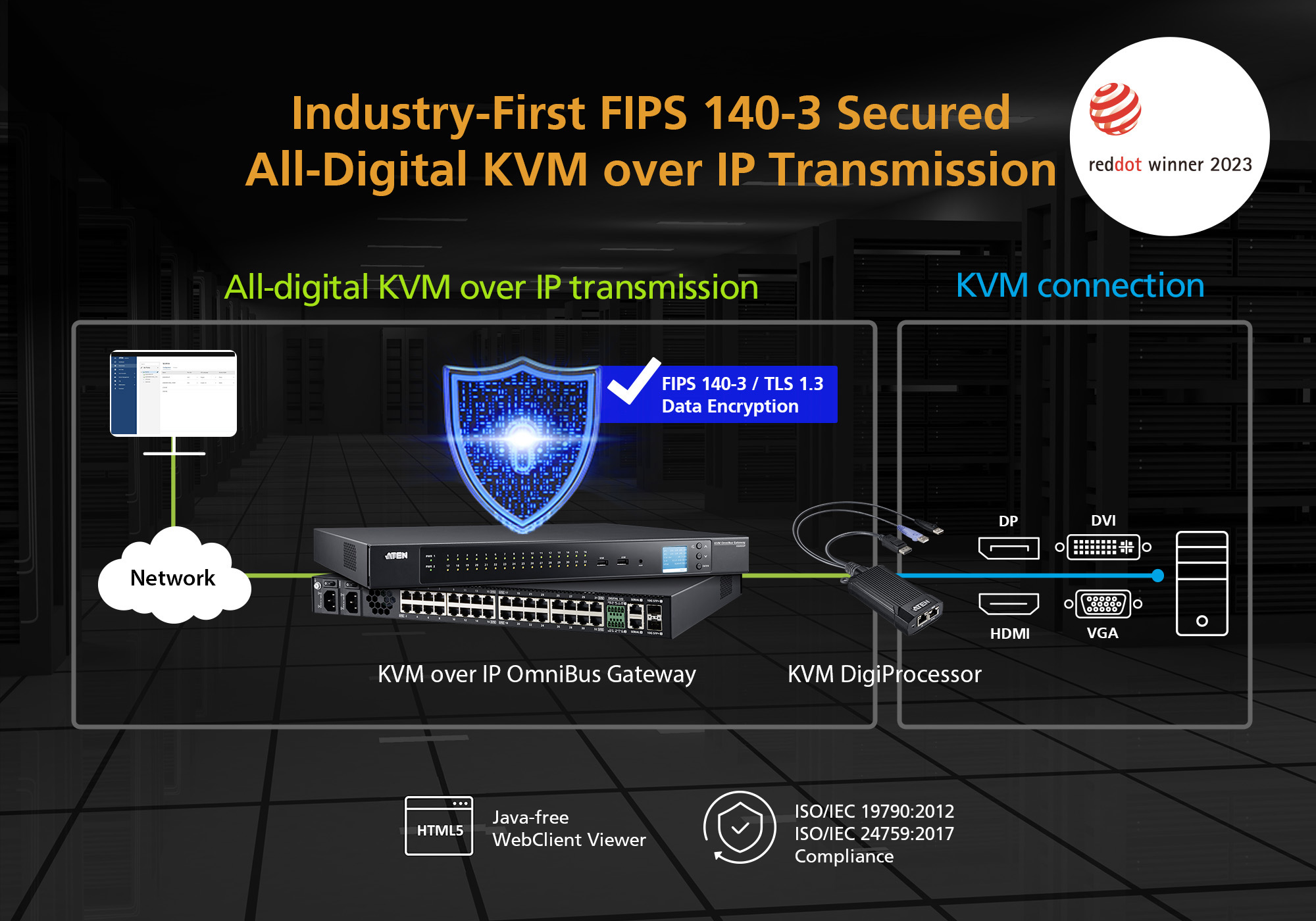 Sydney, Australia (Aug. 13, 2025) - ATEN International, a global leader in KVM and AV/IT connectivity and management solutions, proudly announced a groundbreaking milestone: the ATEN DigiKVM™ is now the industry’s first Single-Portal, All-Digital KVM over IP Solution to integrate a FIPS 140-3 compliant encryption module. This sets a new security benchmark for centralized control in mission-critical applications.