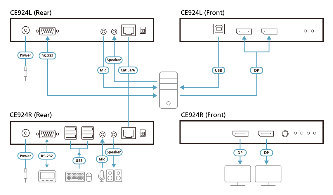 - 1x CE924R USB DisplayPort Dual View HDBaseT 2.0 KVM Extender (Remote Unit)