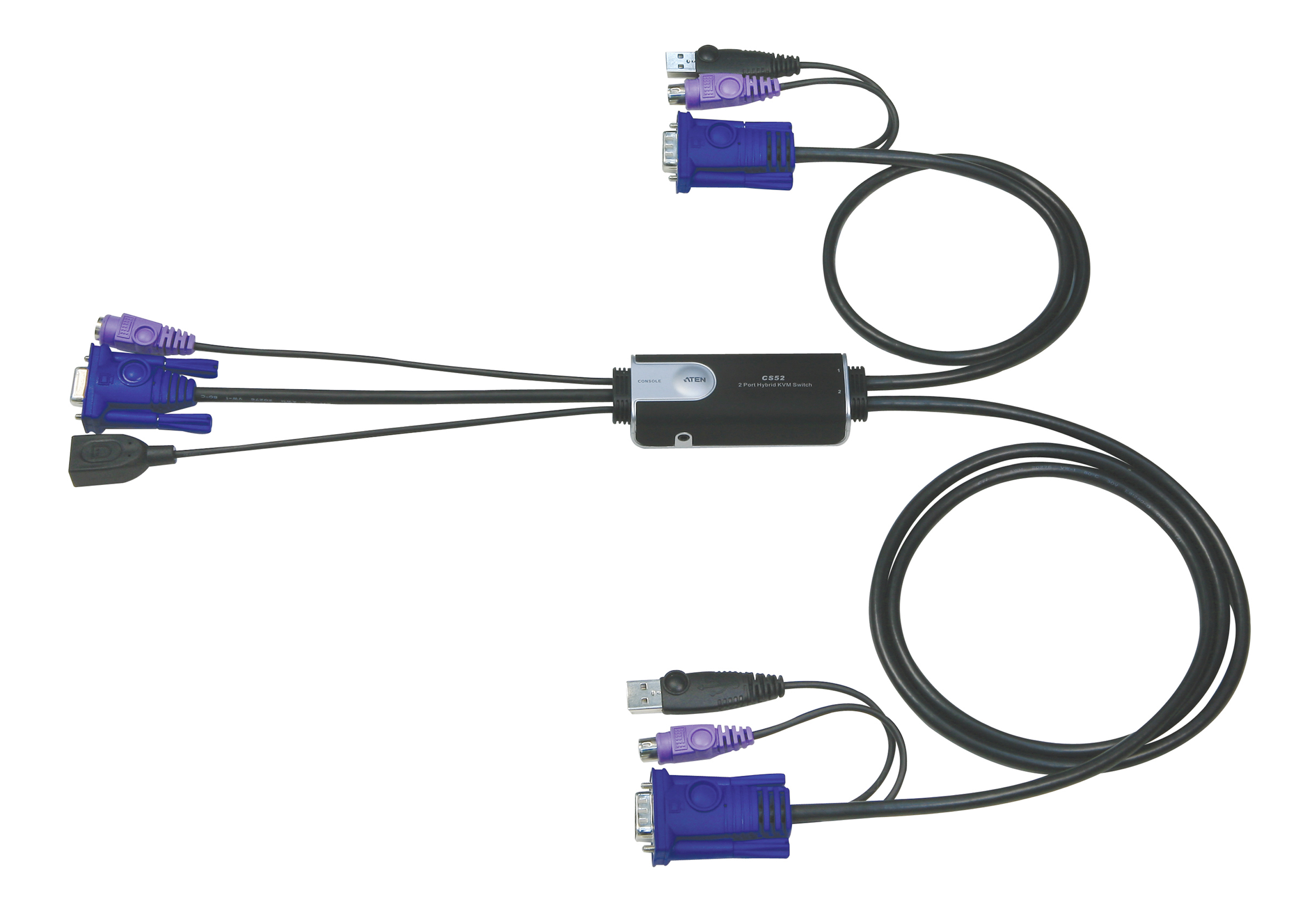 - Built in all-in-one cables (console 0.15m; computers 0.6m, 1.2m) and bus-powered design