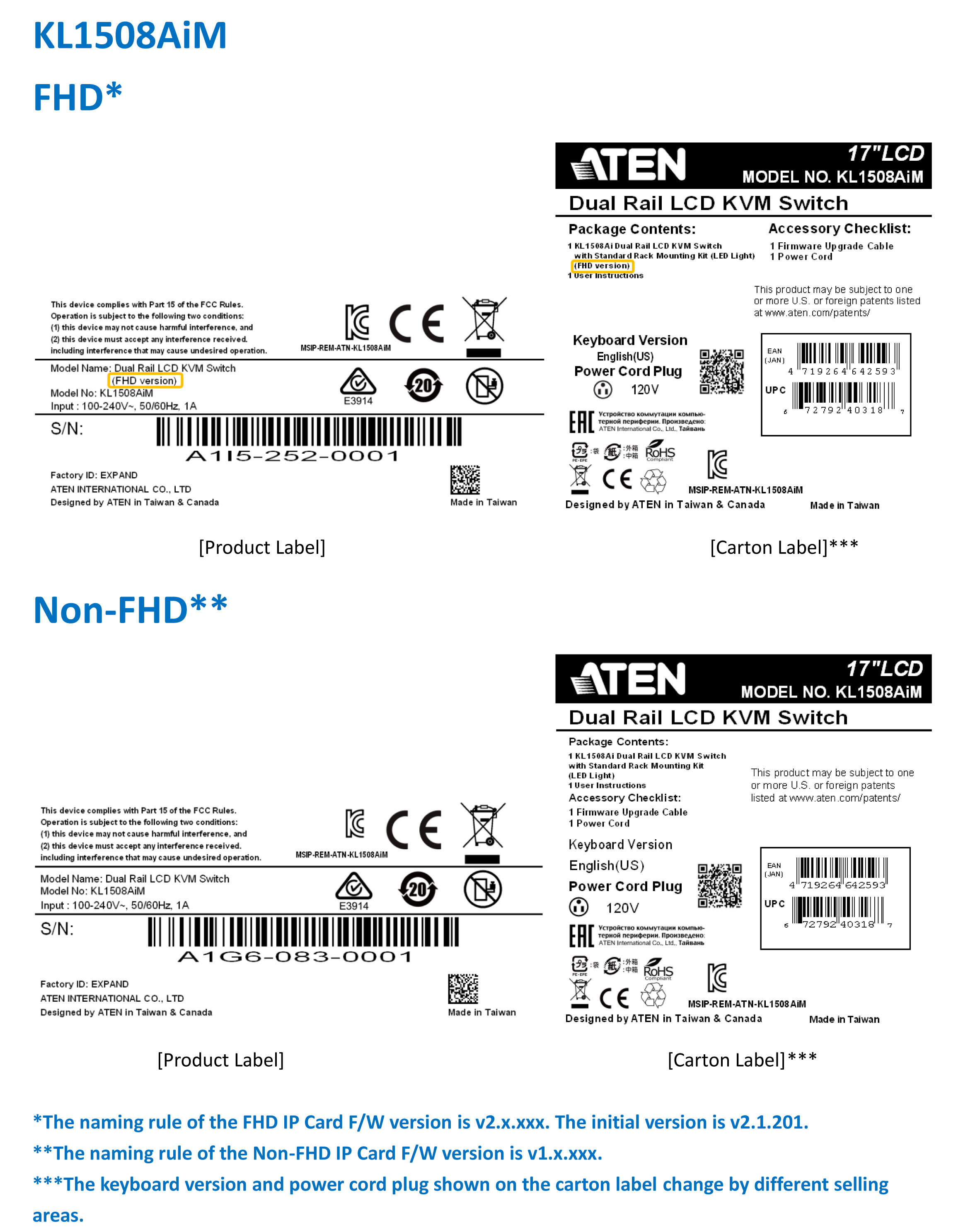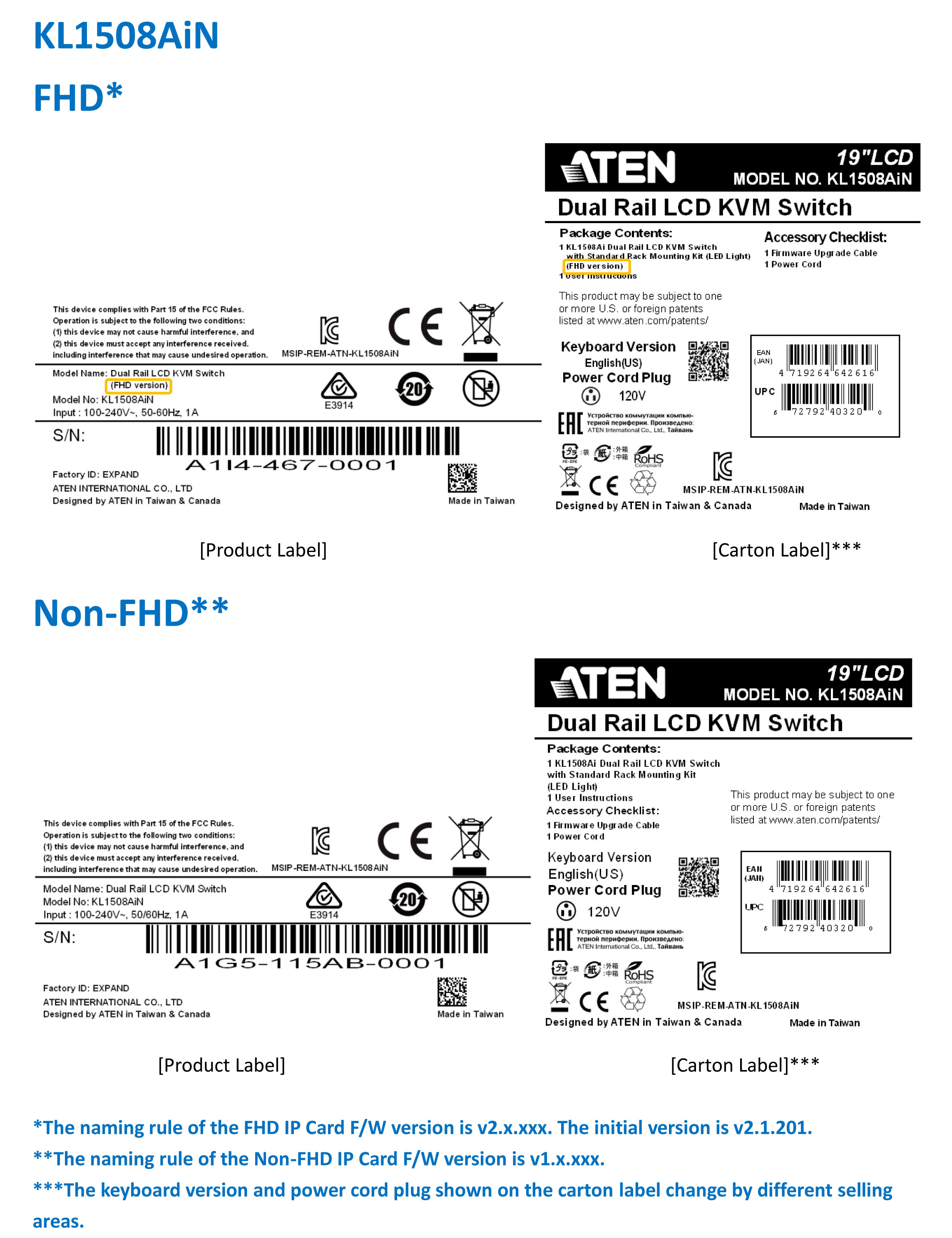 1. The input video resolution of KL1508Ai has been enhanced to Full HD. To distinguish between the