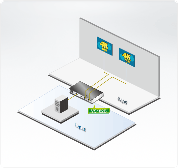The VS182B is a 2-port video splitter that delivers True 4K audiovisual content from a single HDMI source to two HDMI displays simultaneously. It’s an ideal addition to any AV setup where consistent, high-definition content sharing is essential – such as in home entertainment systems, SOHO studios, meeting rooms, classrooms, and more.