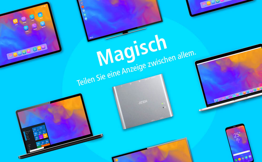 Es bleibt keine Zeit zu verlieren, wenn es um die Umschaltung geht. Dank der exklusiven ATEN Technologie, die Verzögerungs- und Auflösungsprobleme eliminiert, dauert der Wechsel zwischen zwei Systemen nur zwei Sekunden und macht Ihren Workflow effizienter. Ihre HDMI Verbindung bleibt aktiv, ohne das Layout beim Umschalten zu unterbrechen. Der USB-Anschluss funktioniert wie ein USB-Hub, d.h. Sie können alle Funktionen einer Tastatur und Maus, wie z.B. Medientasten oder zusätzliche Maustasten, beibehalten.