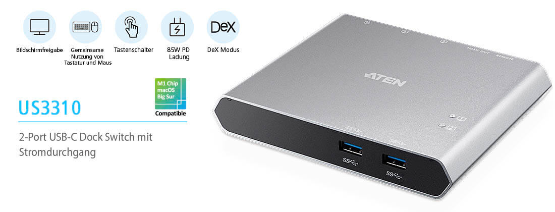 Mit dem US3310 können Benutzer Platz auf dem Schreibtisch sparen, Hostgeräte direkt wechseln und eine personalisierte Desktop Umgebung einrichten.