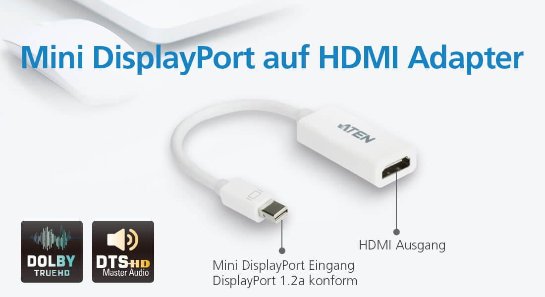 - Konvertiert Mini DisplayPort Signale zu HDMI Ausgang