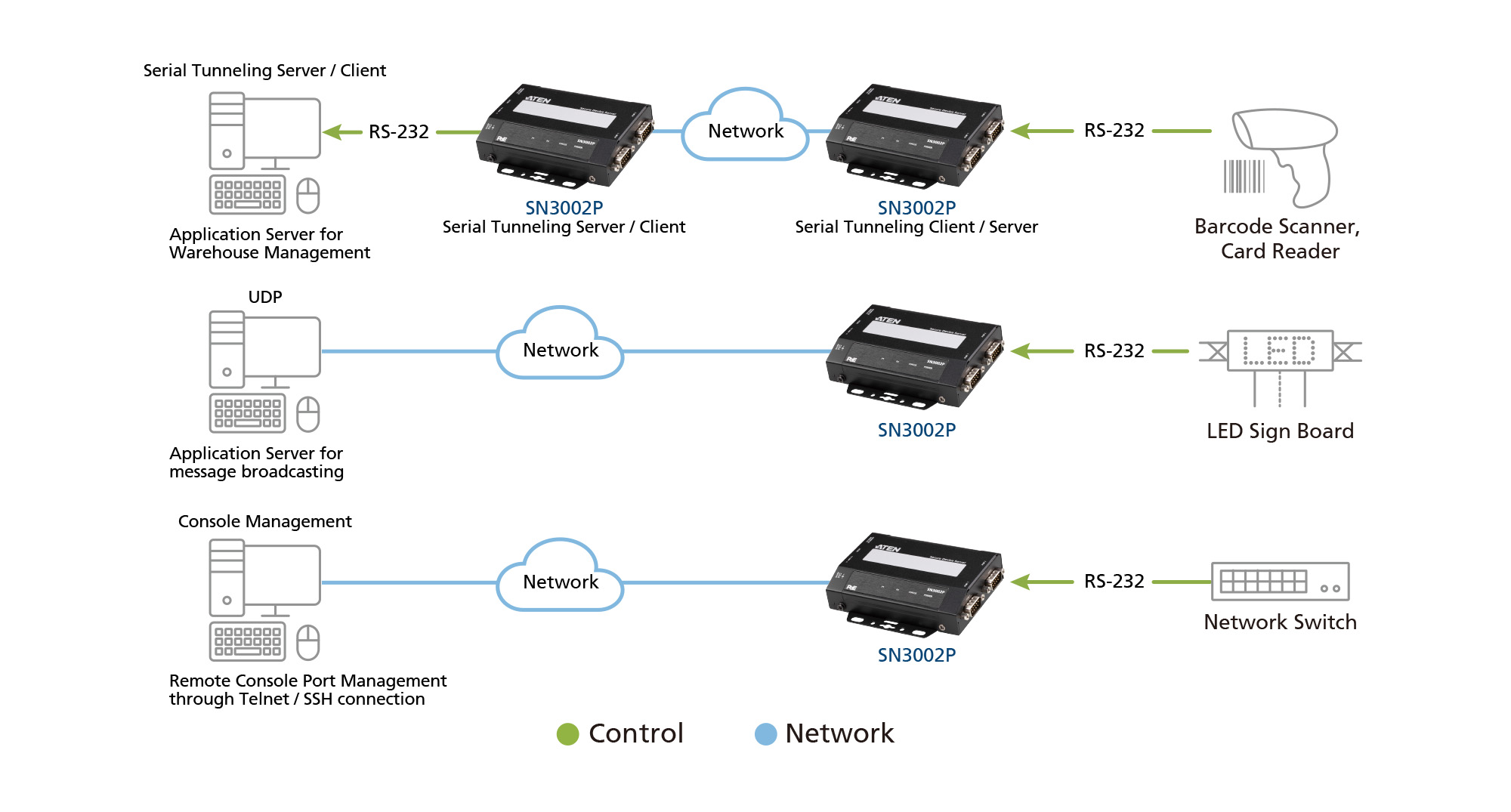 The SN series Secure Serial Device Servers are ideally suited for a wide range of industrial control processes requiring serial-to-Ethernet data acquisition and control, such as those in production lines, retail stores, power plants, public transportation, etc. They are flexibly mountable in various industrial environments and can be seamlessly integrated into existing IT infrastructure.