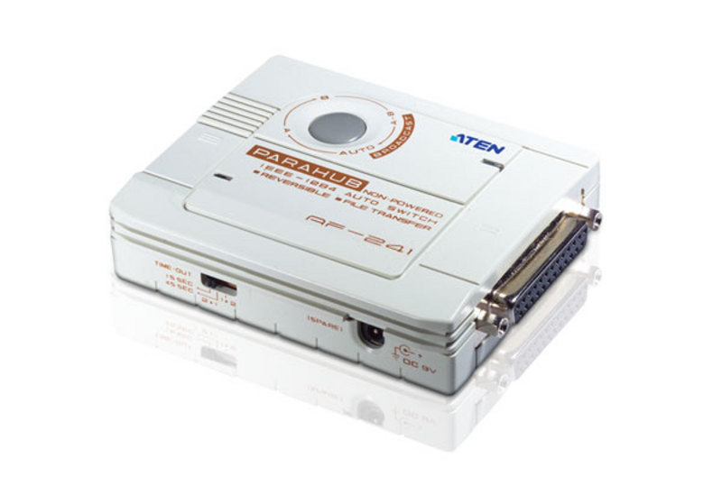 AF241 is a FIFO data switch using the 2 to 1 operation mode (i.e. 2 PCs to 1 printer) and allows users to transfer files to other PCs without additional cable connections.