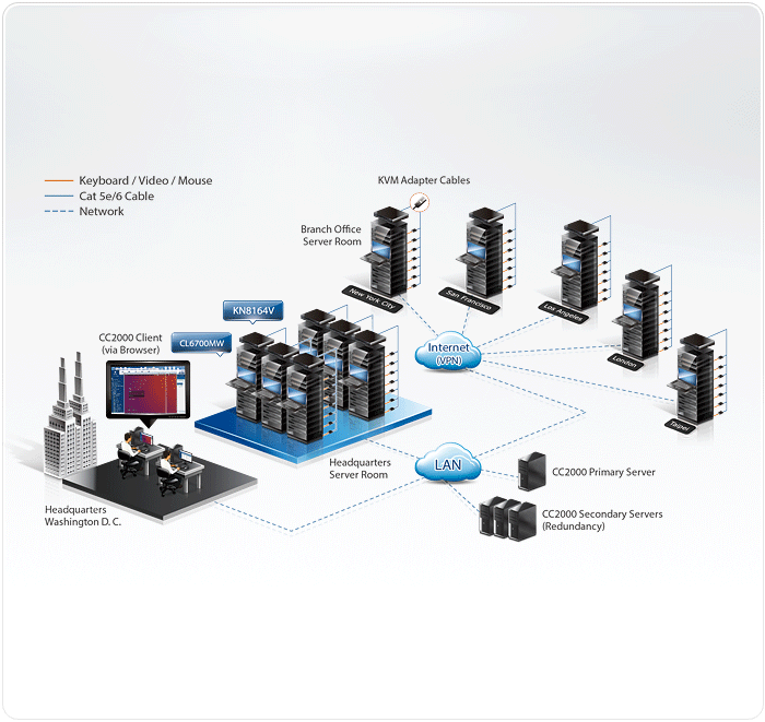 ATEN's CC2000 Management Software – updated with new, powerful, features including VMware support – provides IT administrators with the tools they need to access and control their entire distributed data center environment. Offering convenient, economical, centralized management of all their IT devices, the CC2000 Management Software puts administrators in complete control of their remote data centers and branch offices no matter where in the world they are deployed.