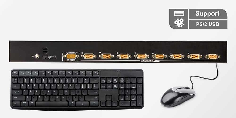 - One USB-PS/2 console controls 8 computers; Cascade up to 2 levels - control up to 64 computers