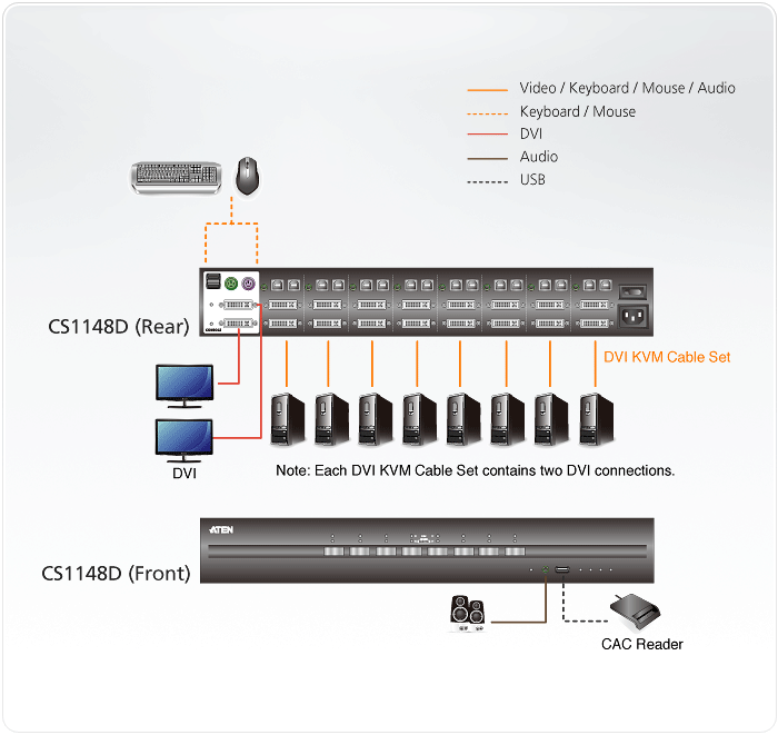 - 1x CS1148D 8-Port USB DVI Dual Display Secure KVM Switch