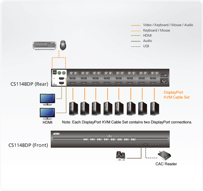 - 1x CS1148DP 8-Port USB DisplayPort Dual Display Secure KVM Switch