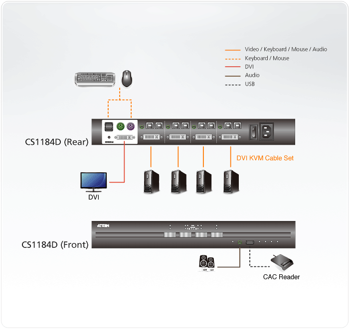 - 1x CS1184D 4-Port USB DVI Secure KVM Switch