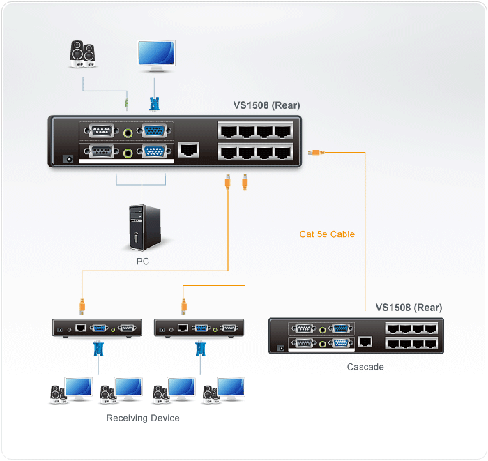 - Cascadable to three levels - provides up to thousands of video signals when combined in an installation with ATEN receiving devices*