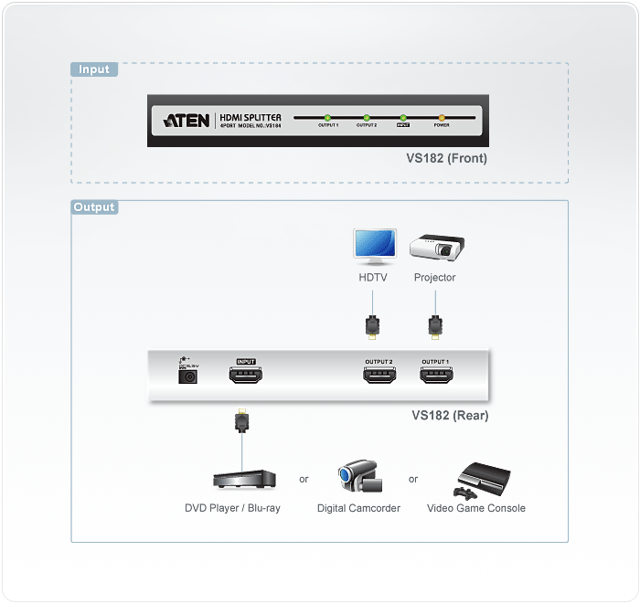 The VS182 HDMI Splitter is the perfect solution for anyone who needs to send one source of digital high definition video to two displays at the same time. It supports all HDMI-enabled equipment, such as DVD players, satellite set-top boxes and all HDMI displays.