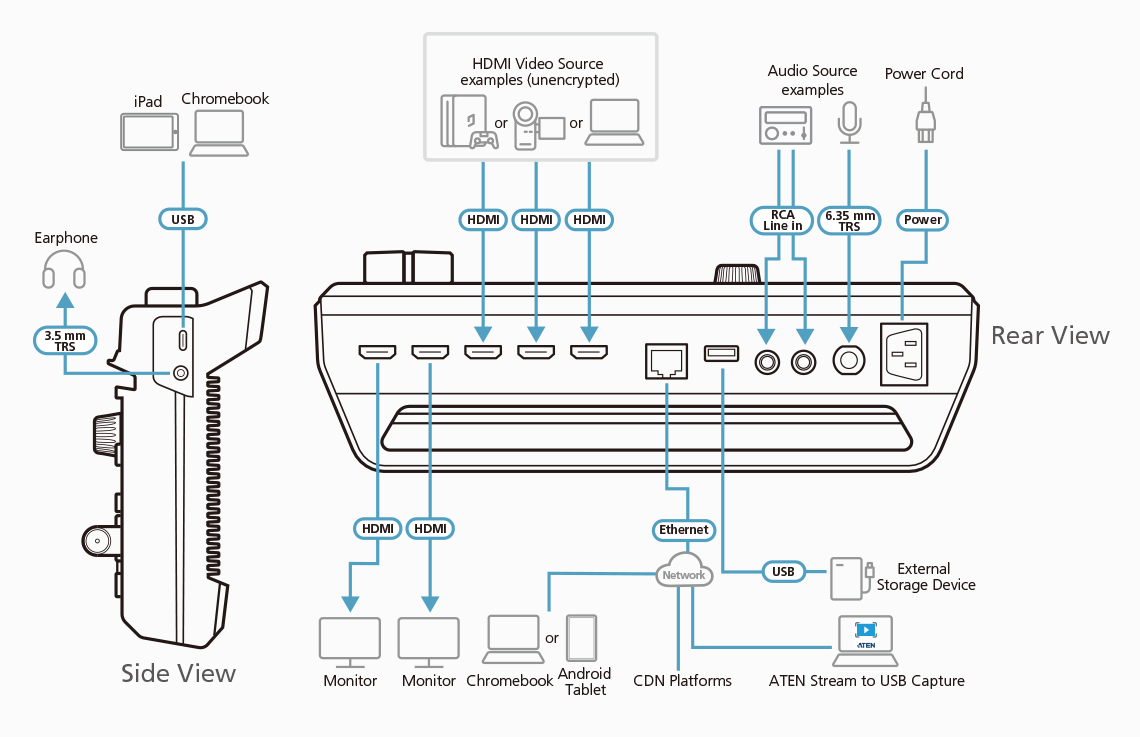 - Works with ATEN Stream to USB software – converts streams from multiple StreamLIVE HDs into USB webcam signals for delivering remote presentations on Skype, Zoom, MS Teams, OBS and more