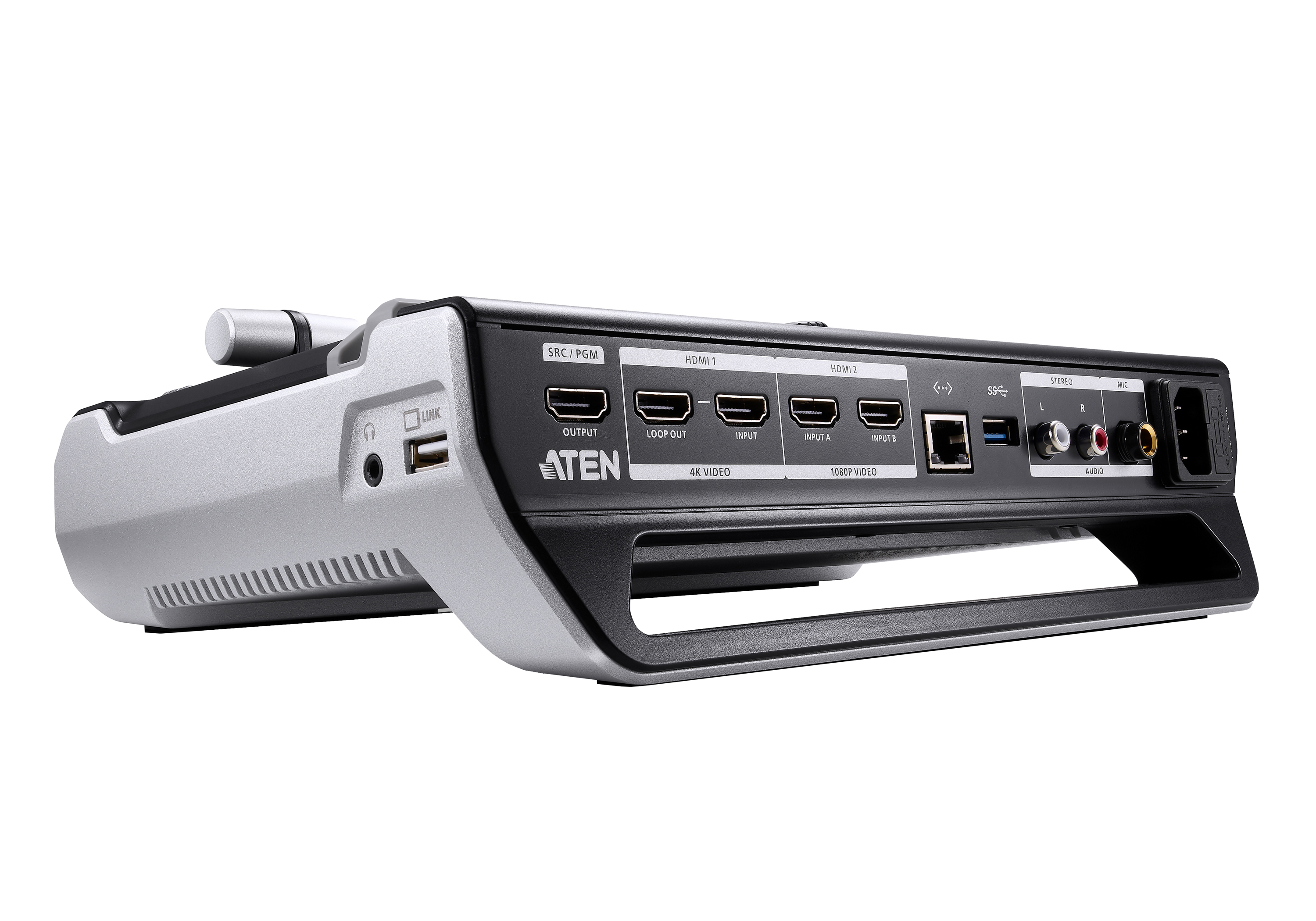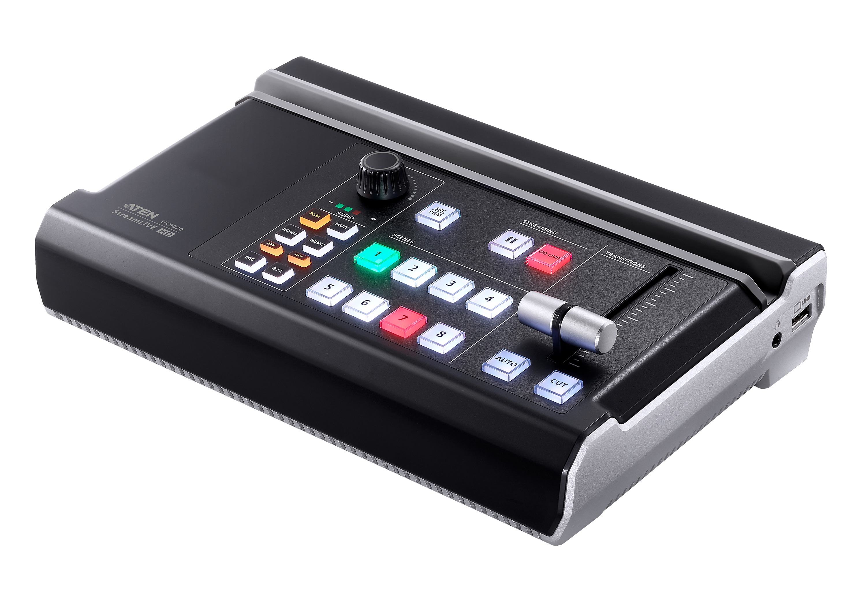- Compact mixer control panel – switches and mixes between multiple video & audio sources with the help of easily identifiable luminous keys