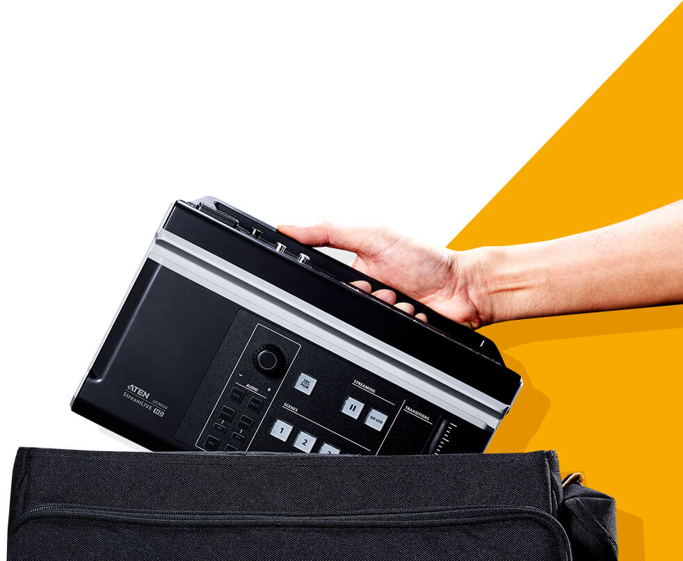 Designed to simplify your video production workflow, StreamLIVE™ HD is not only all-in-one to reduce equipment and cabling that you need to carry for streaming, but also compact in size with extreme portability. It is just so easy to setup and transport. You will be relieved from heavy equipment and complex setups. Use StreamLIVE™ HD whenever you need to stream and it will become your indispensable companion for live video production.