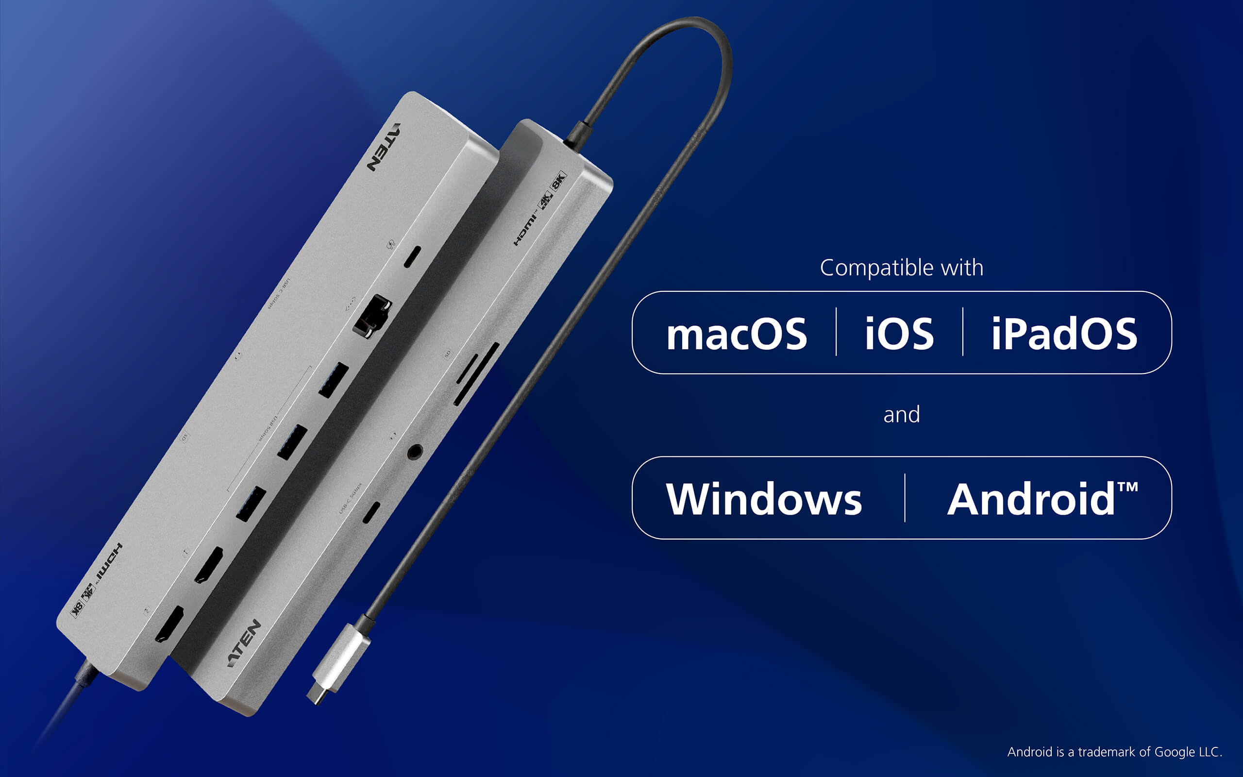 A one-stop upgrade for your hybrid workstation with a USB-C host and an 8K display / dual 4K displays. 11 ports provide extra expansion capabilities for HDMI, USB-C, USB Type-A, SD / MicroSD, Ethernet, and audio devices while allowing Power Delivery 3.0 up to 100W.