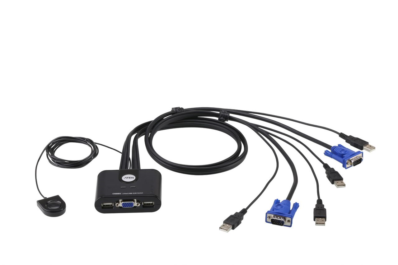 2-Port USB VGA Cable KVM Switch with Remote Port Selector
