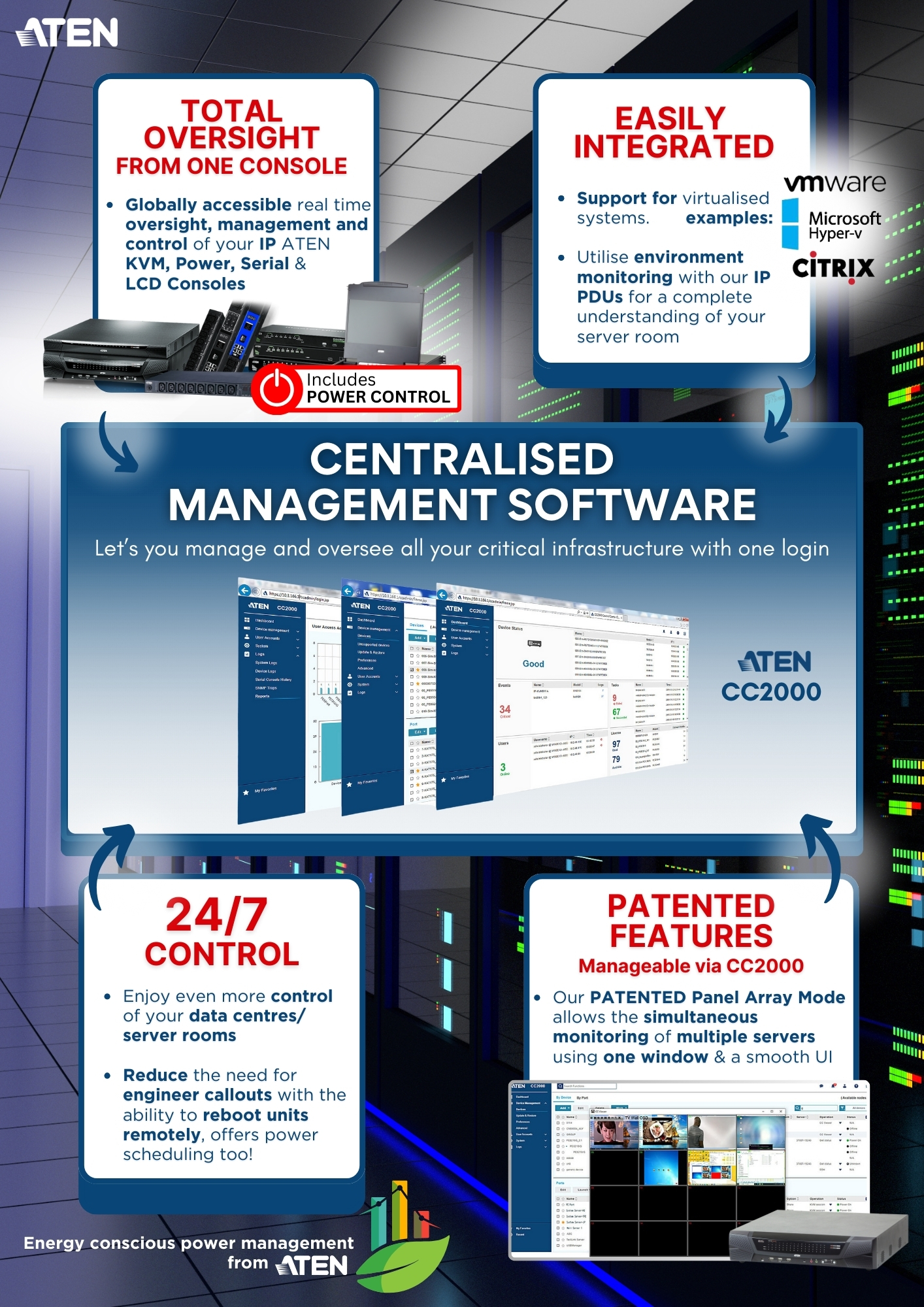 The big data explosion increased buying of data center capacity but it has simultaneously forced IT infrastructures to evolve. To support this immense amount of data requires not only a growing number of data centers, but also new kinds of data center builds and new ways to manage them. ATEN can offer you complete centralised control of your critical infrastructure. Including power management, environmental monitoring & much more.