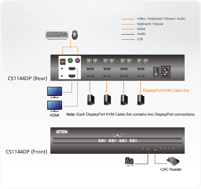 - 1x CS1144DP 4-Port USB DisplayPort Dual Display Secure KVM Switch