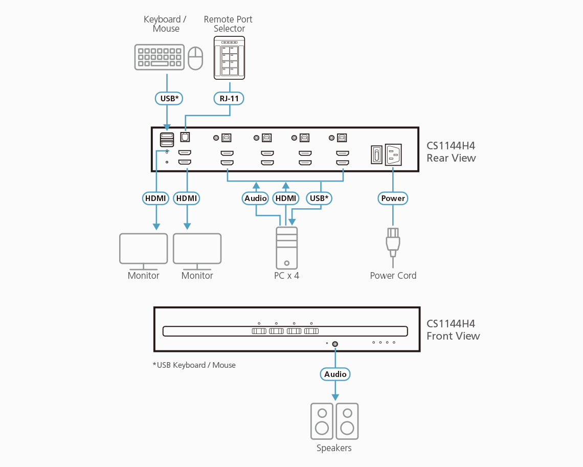 - 1x CS1144H4 4-Port USB HDMI Dual Display Secure KVM Switch