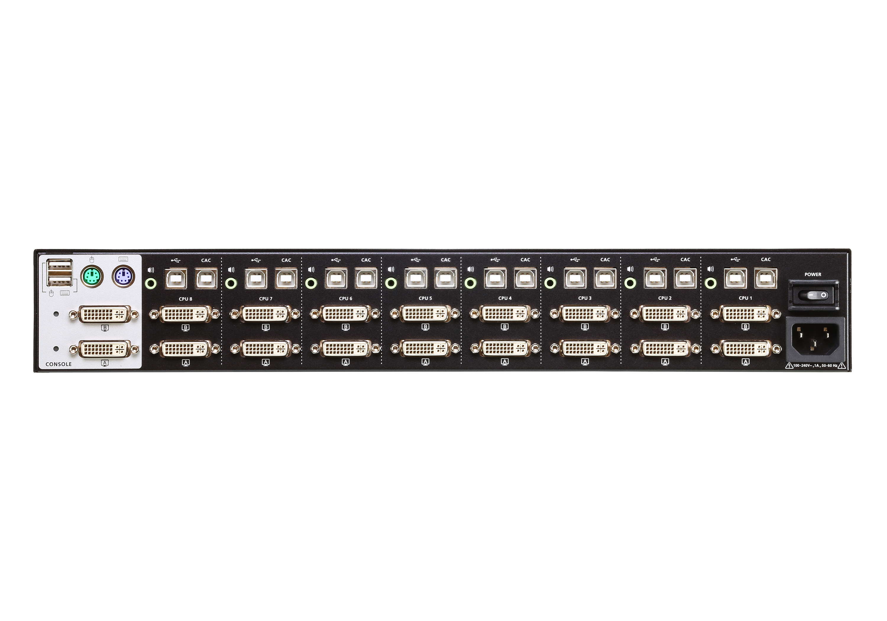 | KVM Ports | 16 x USB Type-B Female (White) 16 x DVI-I Dual Link Female (White) 8 x Mini Stereo Jack Female (Green) |