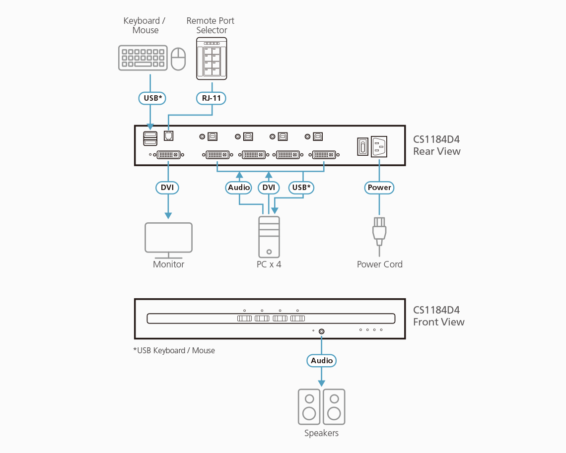 Note: 1. The Remote Port Selector is not supplied in the package and requires a separate purchase.