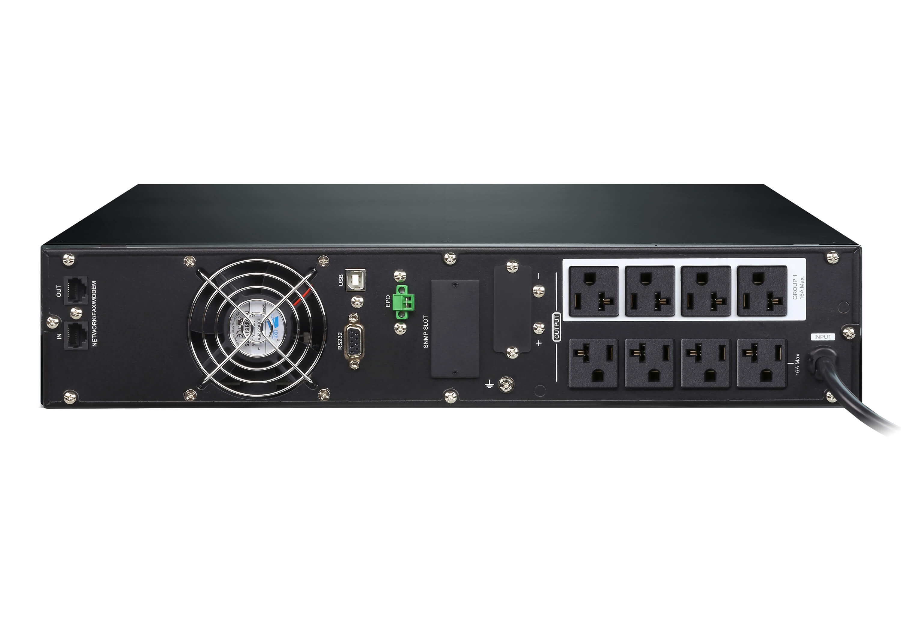 power failure, this feature enables users to extend battery time to mission-critical devices by shutting down noncritical devices. - Emergency Power Off function (EPO) – EPO connector at rear panel allows emergency UPS Power Off from a remote location.