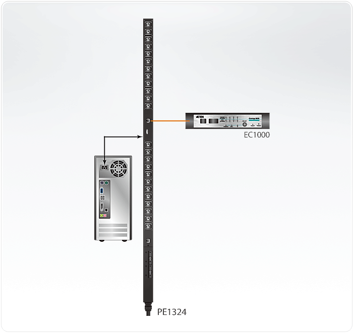The PE1324 Energy PDU can be integrated into an installation with the EC1000 Energy Box*, allowing you to monitor the real-time current and environmental conditions of the Energy PDU from the front panel of the EC1000 at the rack, or via Web GUI remotely – making your server room efficiently green with ease.