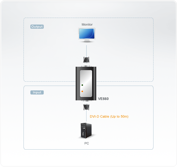 - One unit handles digital video extension and supports long length cable (24 AWG cable) for digital signal transmission.