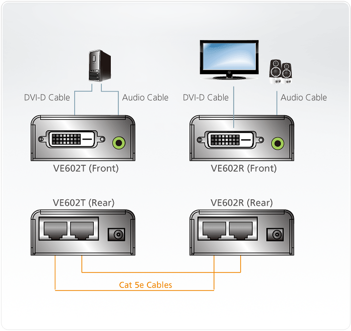 - 1x VE602R DVI Dual Link Extender with Audio