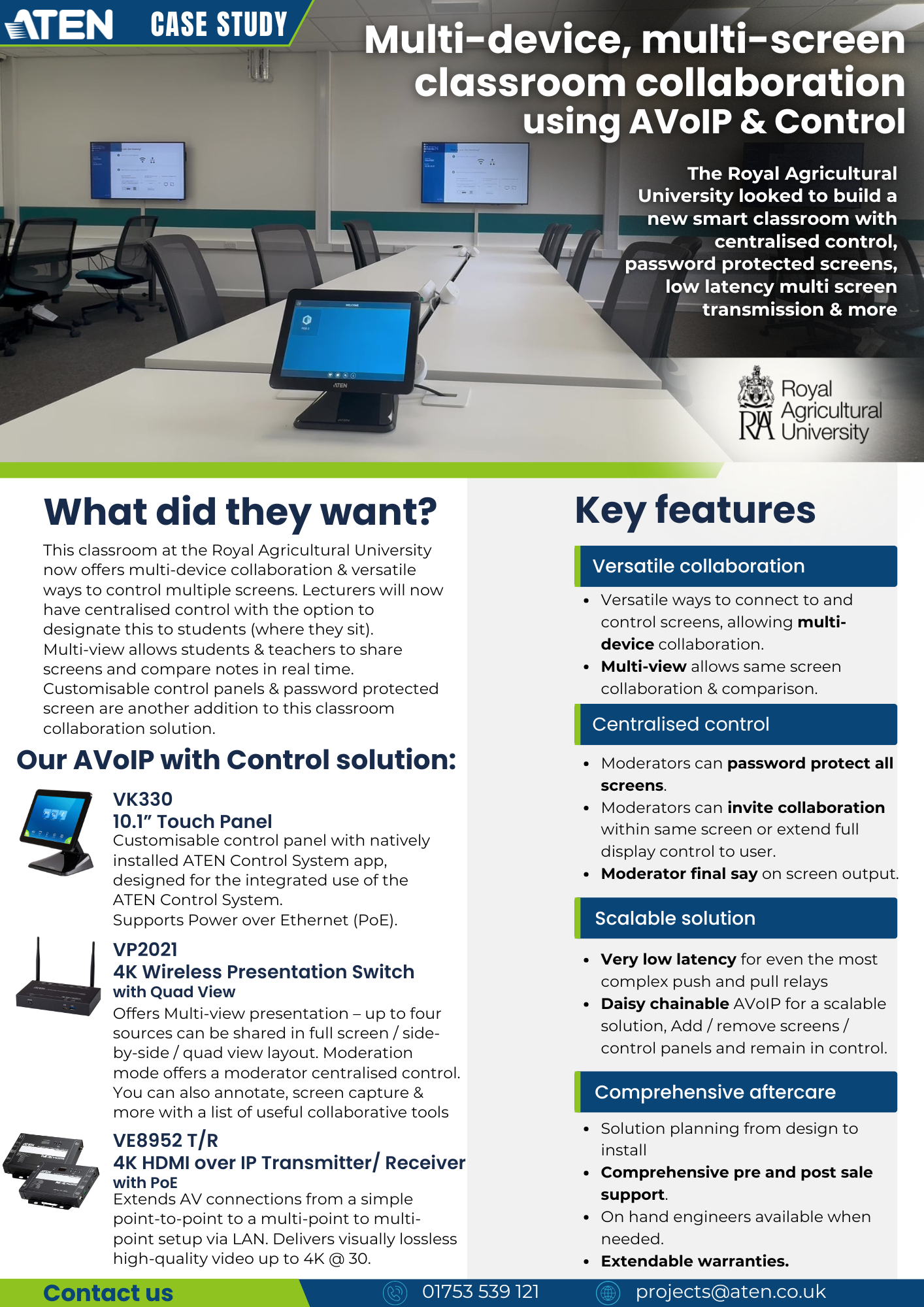 The Royal Agricultural University is at the forefront of agricultural education and a key contributor to the land-based sector for 180 years. With more than 1,100 students they required a low latency classroom collaboration solution with centralised control.