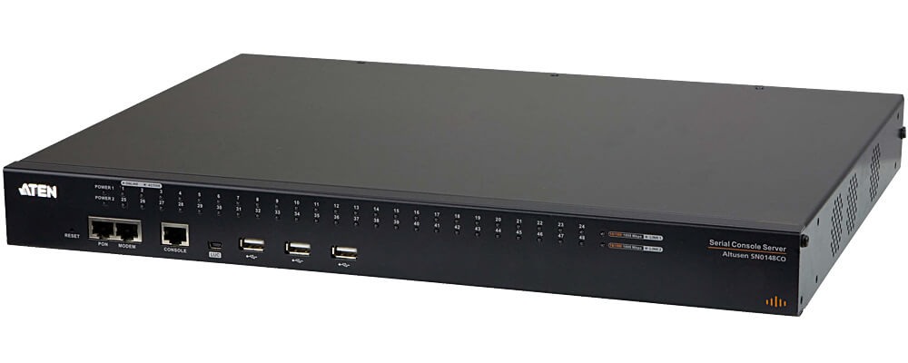 The ATEN SN0148CO 48-Port Serial Console Server with Dual Power/LAN facilitates single-interface management of different server brands and GenAI servers operating on different IPMI/BMC software.