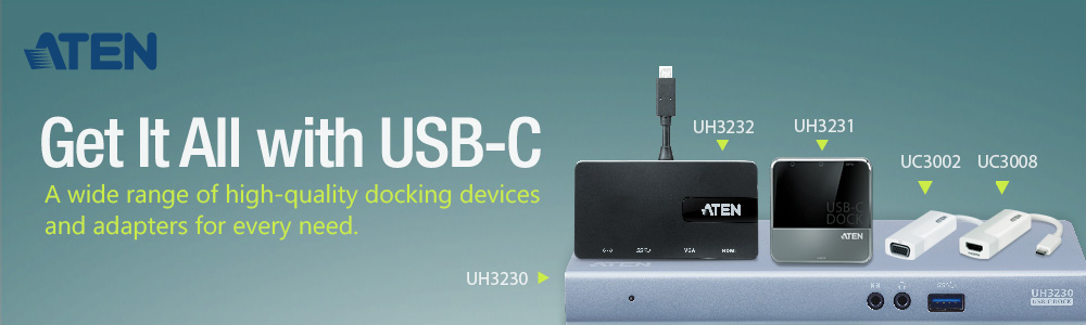 “ATEN’s over 25 years of experience in USB connectivity along with our top R&D talent give us the resources and knowhow to build the highest quality USB Type-C products. What’s more, our keen understanding of the market and user demands has allowed us to develop a comprehensive series of docking devices and adapters for every possible need,” said Kevin Chen, President of ATEN International.