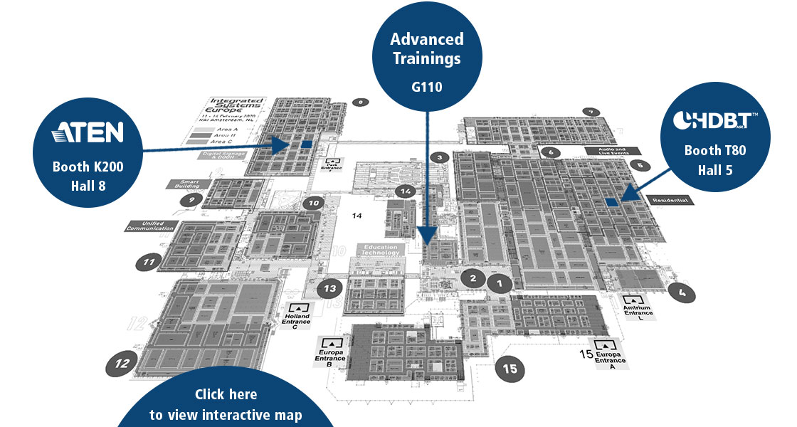 Taipei, Taiwan (January 30, 2020) – ATEN International, the leading provider of AV/IT connectivity and management solutions, will once again participate in Integrated Systems Europe (ISE) from February 11-14 at RAI Amsterdam. The most experienced engineers will gather in Amsterdam to demonstrate ATEN’s products live and hold advanced trainings for installers and integration specialists to provide a complete overview of the seemingly endless ways in which ATEN products can be implemented. A variety of booth tours, keynote speeches, and training sessions will be offered at the ATEN booth (Hall 8, Booth K200) over the course of ISE 2020.