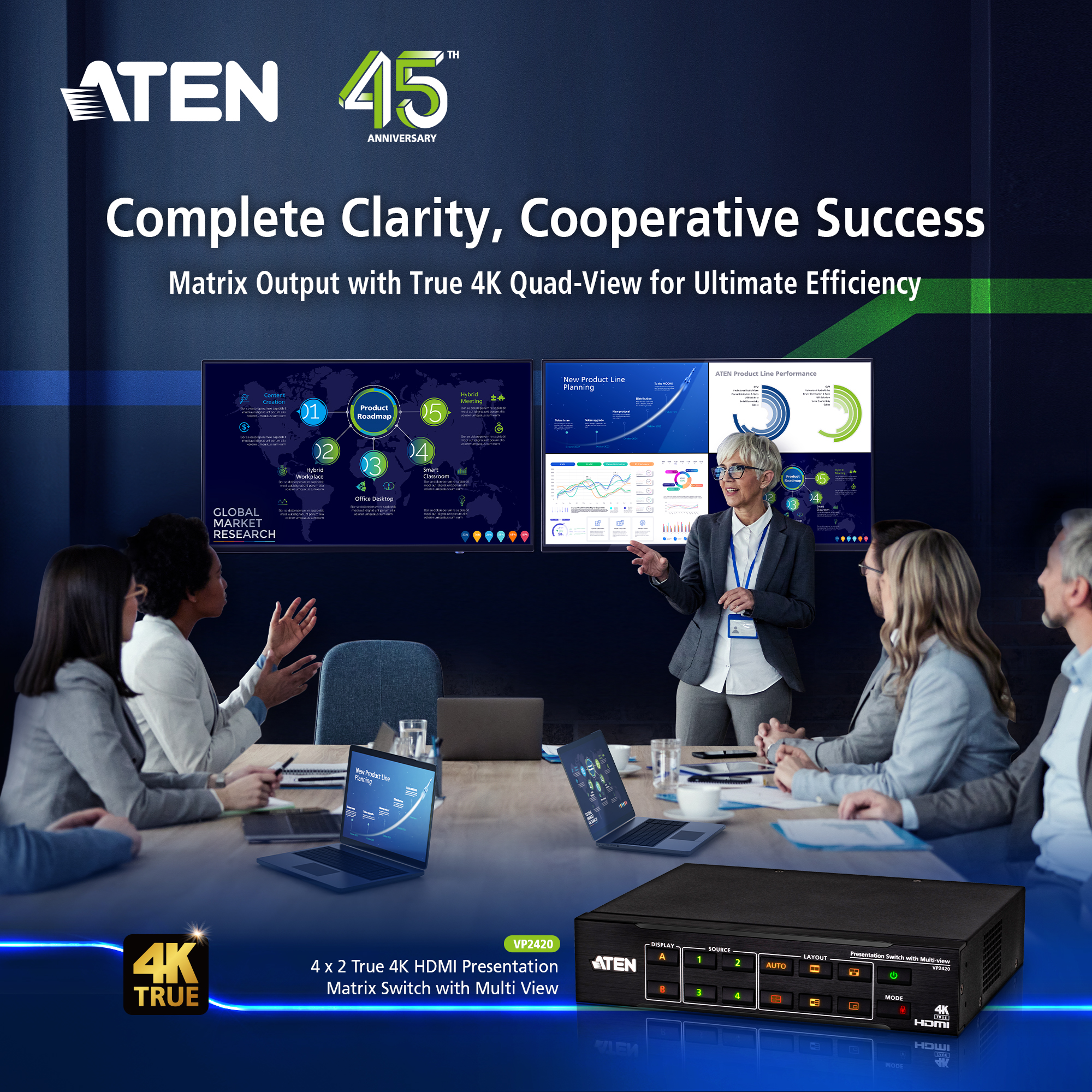 ATEN Debuts new True 4K Presentation Matrix Switch with Multi View for elevating collaboration to new levels.