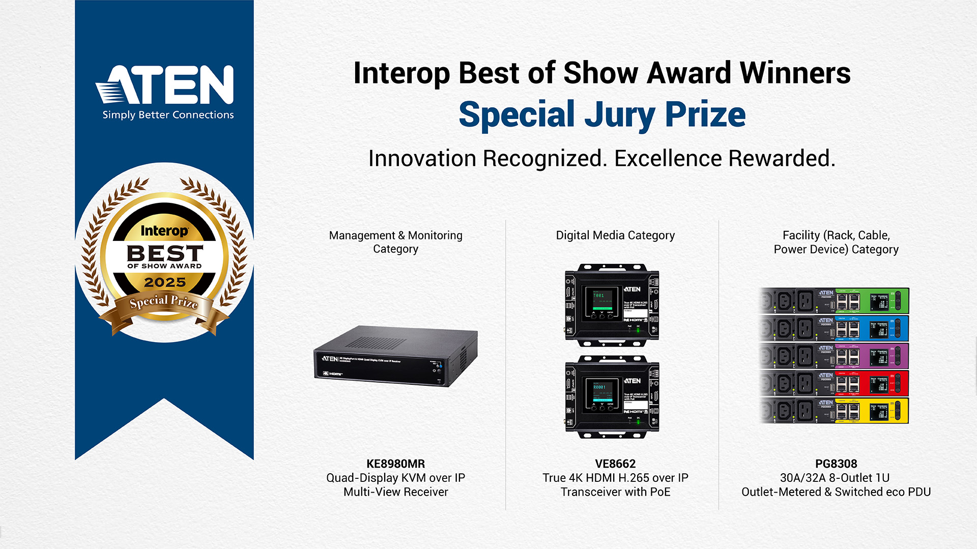 Three ATEN Products Win Special Jury Prizes in the Prestigious Interop Best of Show Awards 2025.