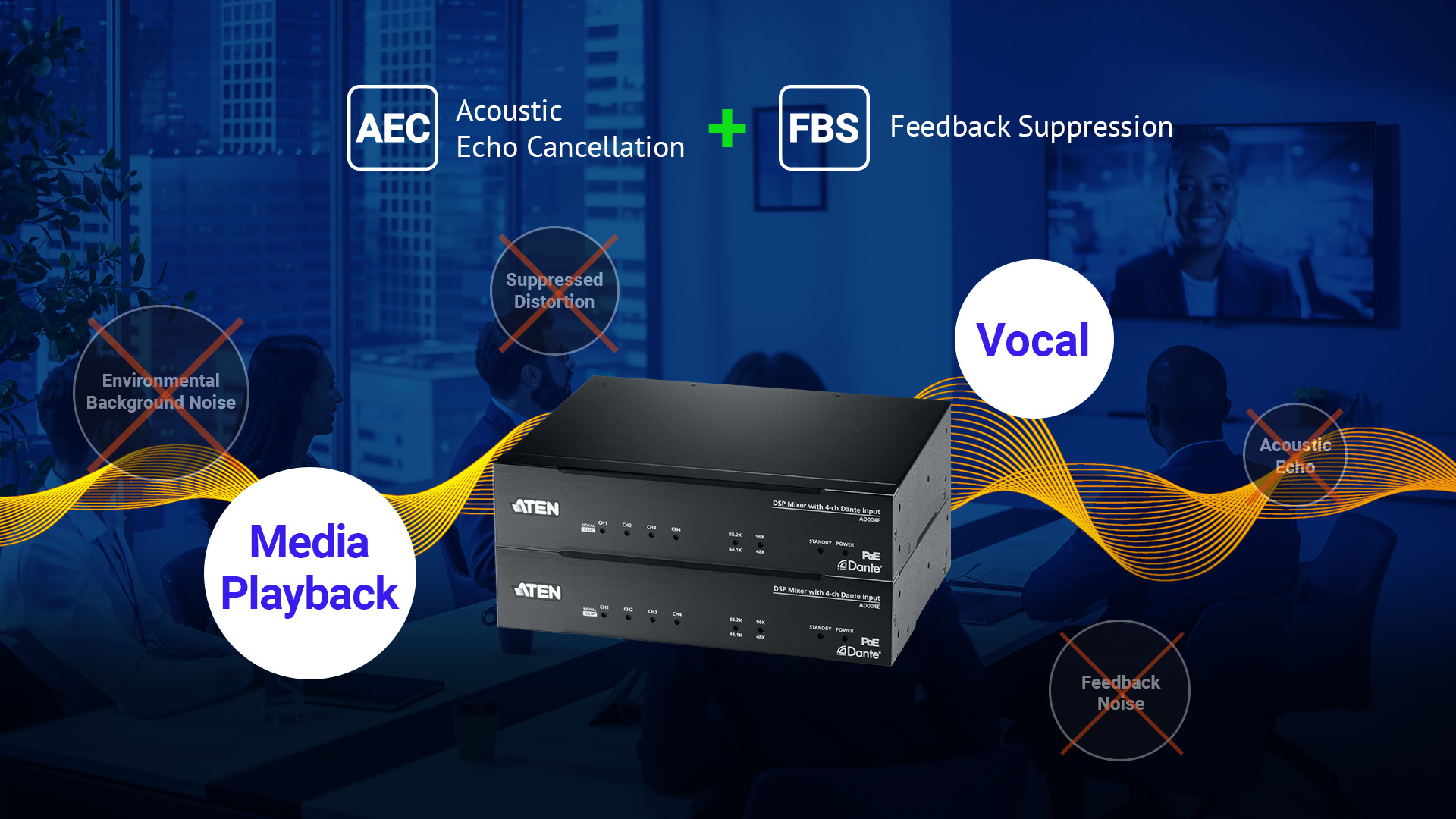 The ATEN pro audio solution is engineered to deliver impeccable sound quality and clarity. Seamlessly integrating with the ATEN VK control system, it provides optimal compatibility and intuitive control, ensuring a collaborative experience that's as effortless as it is impactful.