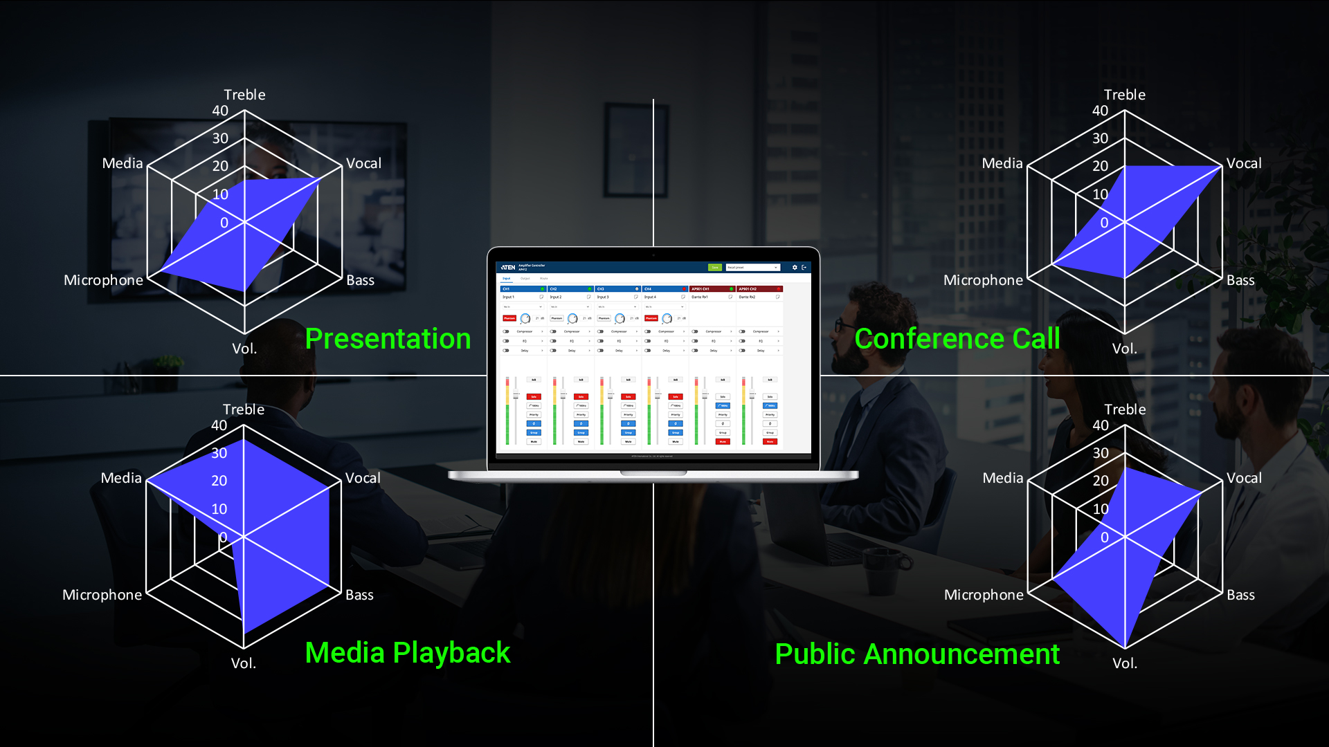 Easily configure audio settings tailored to different meeting types, ensuring an optimized and streamlined meeting experience every time.