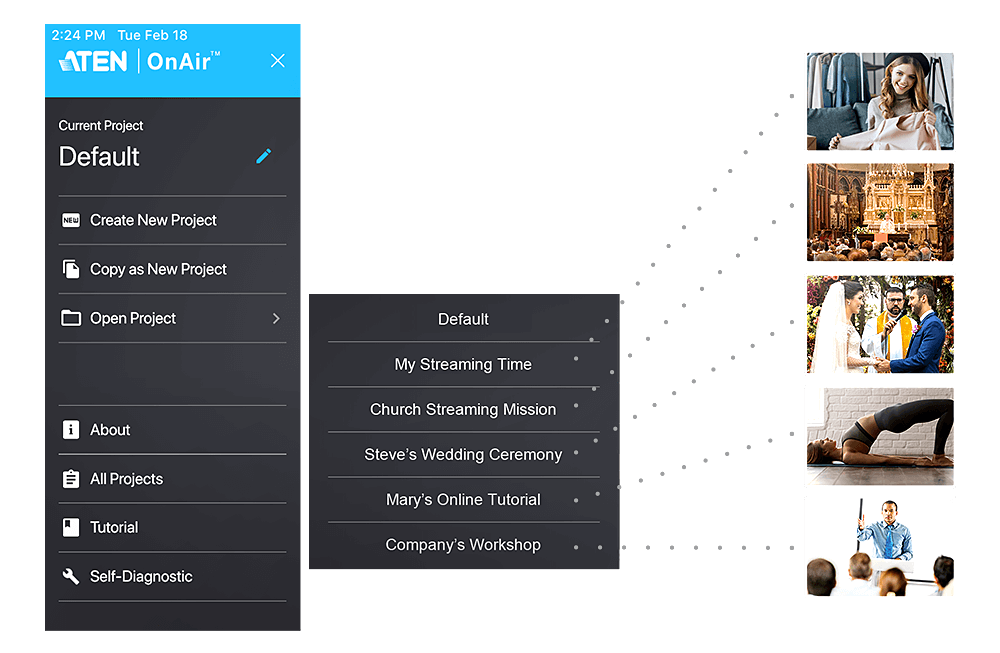 Save your livestreaming scenarios with different scene presets and overlays into different projects for easier management and quicker access. You can also export a project and share it to other StreamLIVE™ systems.