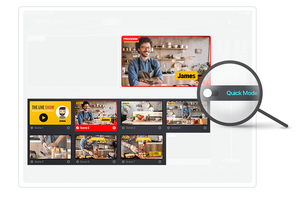 When Quick Mode is turned on, the PREVIEW is disabled. You can switch and stream out video feeds directly for fast switching.
