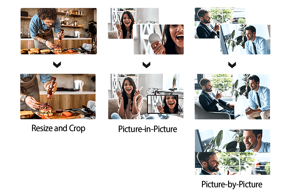 Scene editor lets you customize scenes with your creative ideas. You can create the layout either in single view, dual view, or with a still background image. Freely combine, crop, and scale video based on the camera angle to make outstanding PnP layouts. Move video to a desired position. Add transparent png images and backgrounds from your iPad’s photo library, and create title overlays with professional-looking effects.