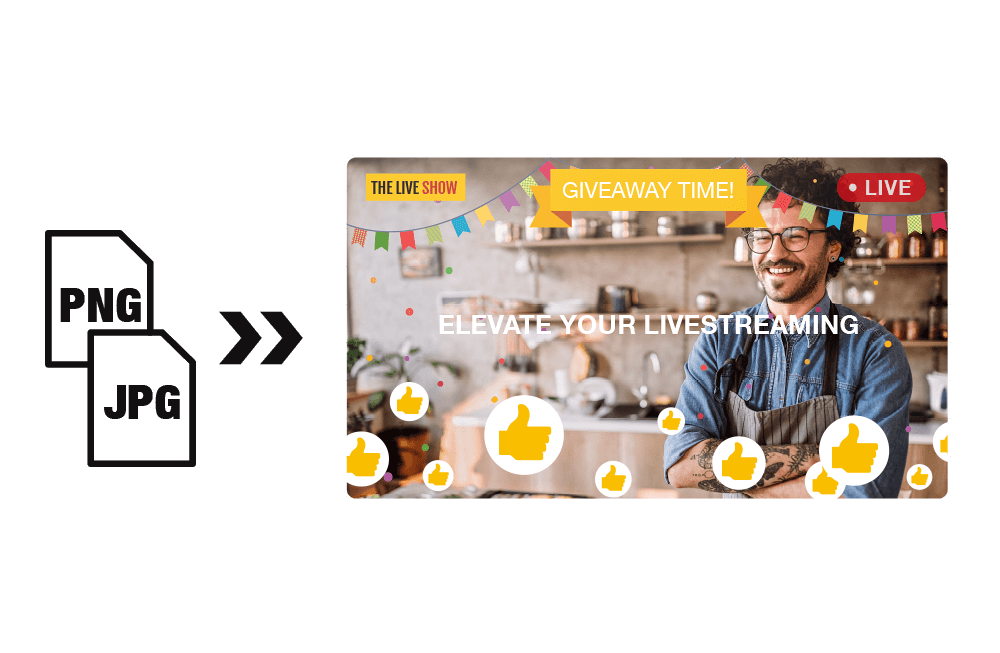 If you don’t know how to design fancy graphic overlays, worry no more! The OnAir App has built-in templates for you to easily elevate your livestreaming. Just create a new project and choose one that best matches your scenario and you are ready to roll.