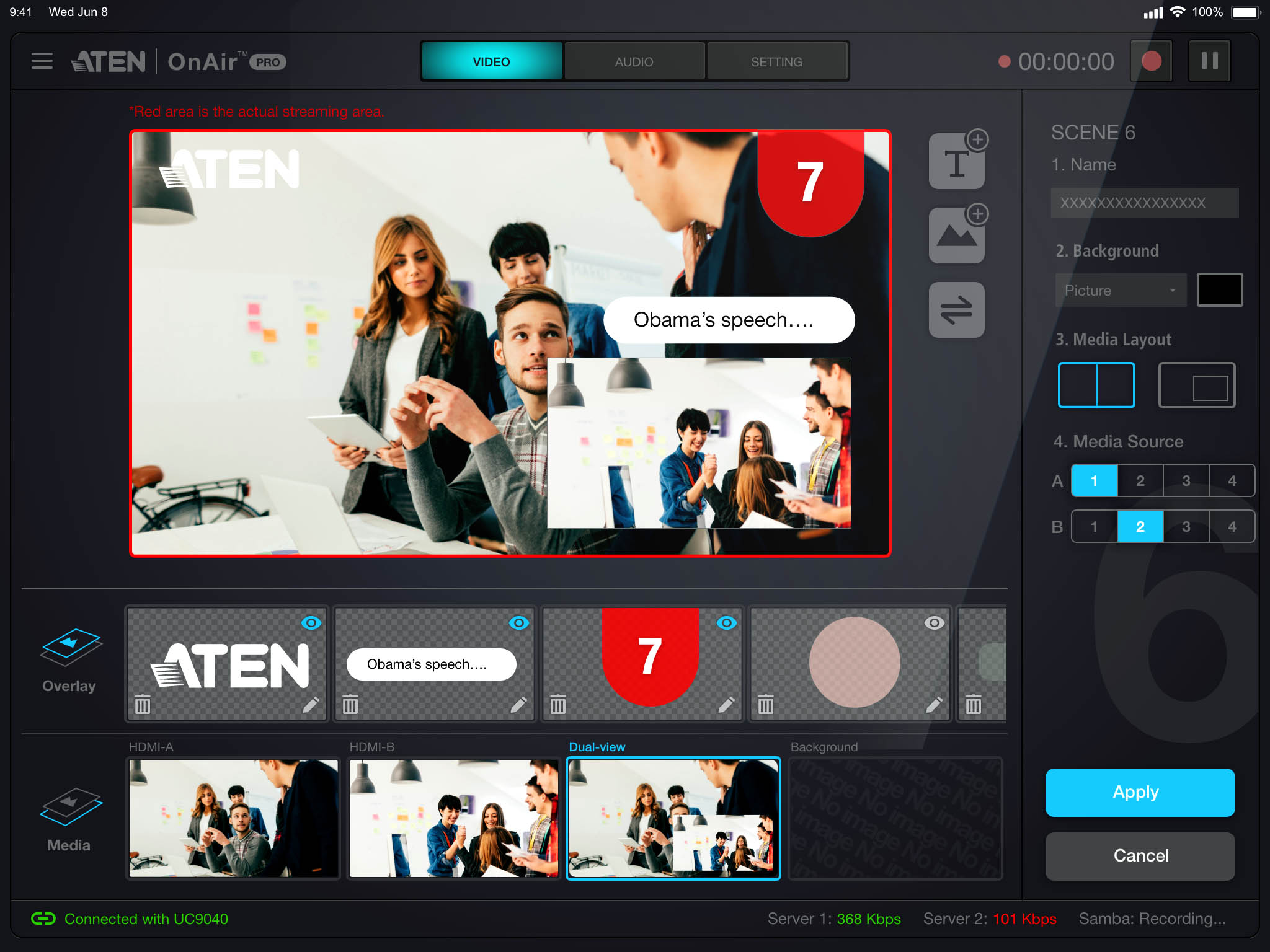 You can preset up to 8 scenes for a more detailed program planning process. Create your own storyboard and apply it to 8 scenes to make your show smooth and professional, just like a great TV program.