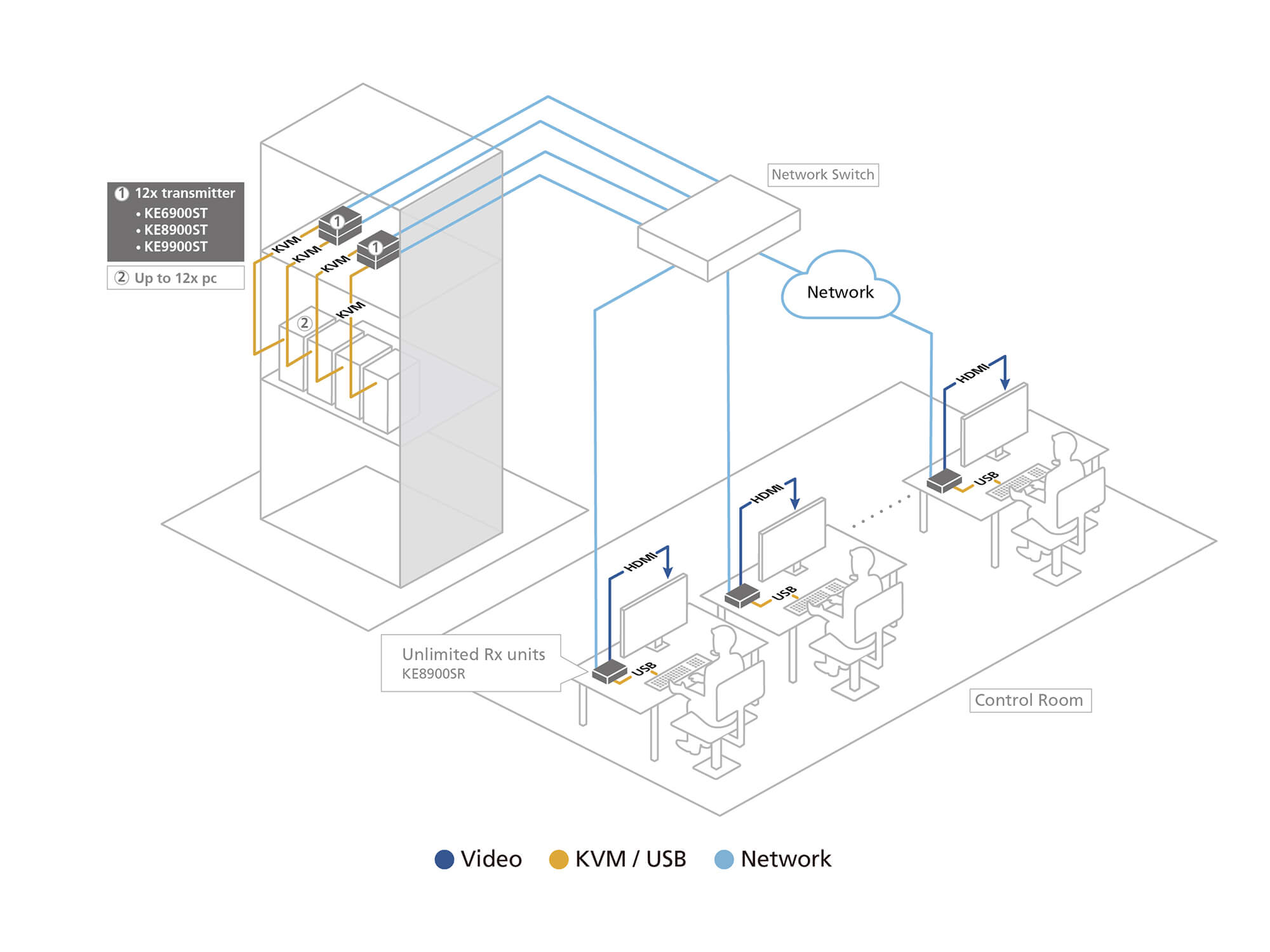 Connections, control and switching of all KE/KX models in a matrix configuration can be easily managed via a user-friendly web GUI with CCKM over a network