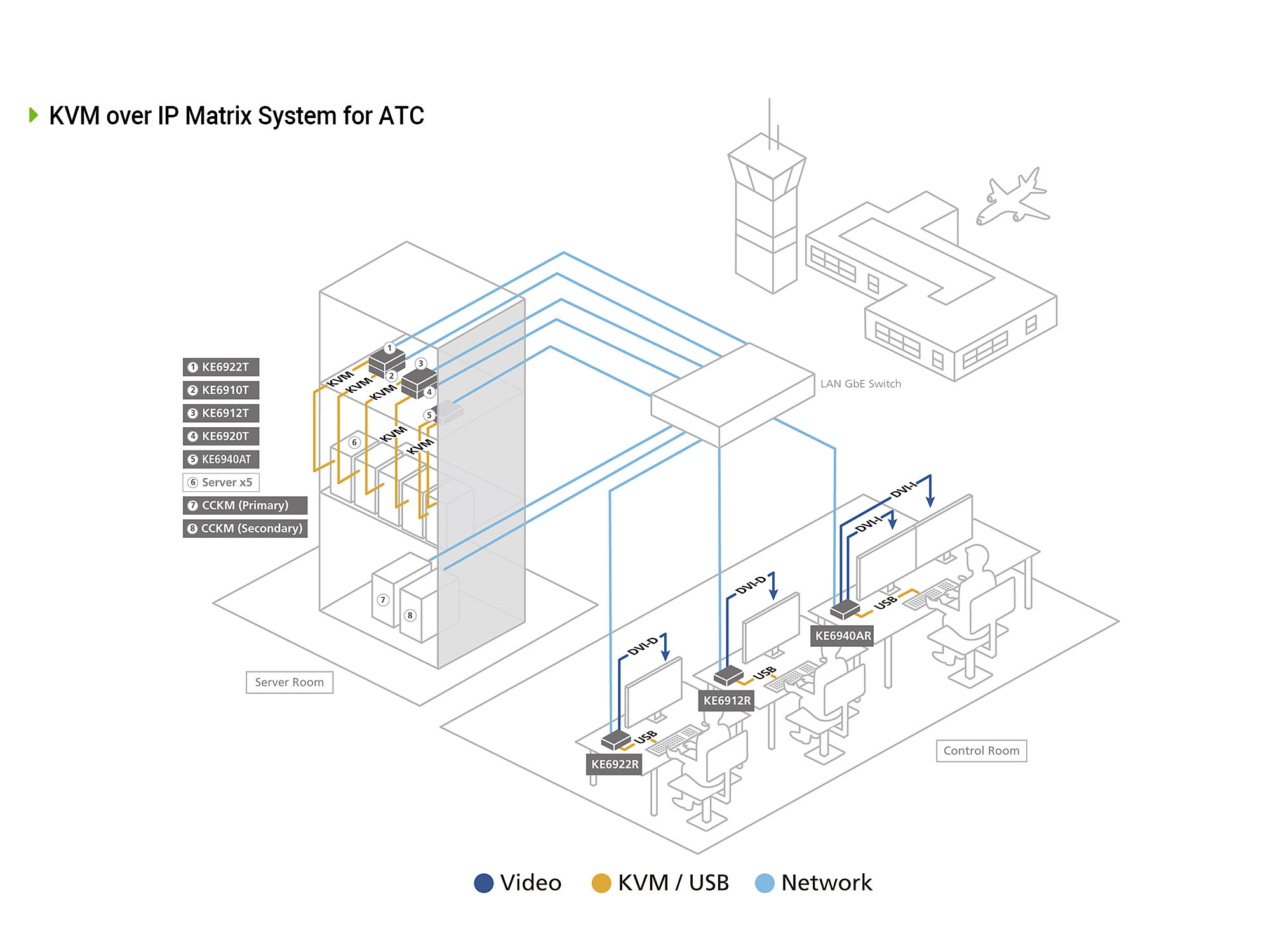 The KVM over IP Matrix System guarantees secure, extendable, and zero latency KVM over IP data transmission with no distance constraint to uplift real-time situational awareness for control room operations