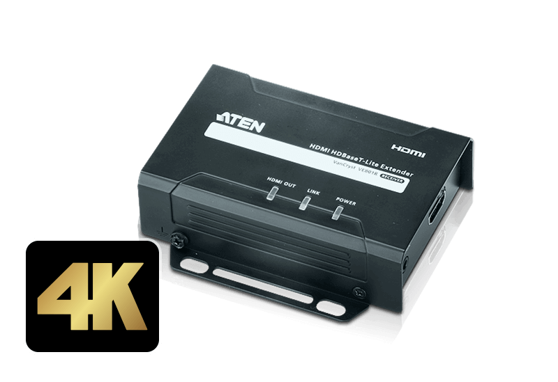 As ATEN’s first video transceiver, the VE1843 features the latest HDBaseT spec 3.0 to transmit uncompressed True 4K HDMI with multiple control signals up to 100 m to deliver stunning clarity and crisp details.
