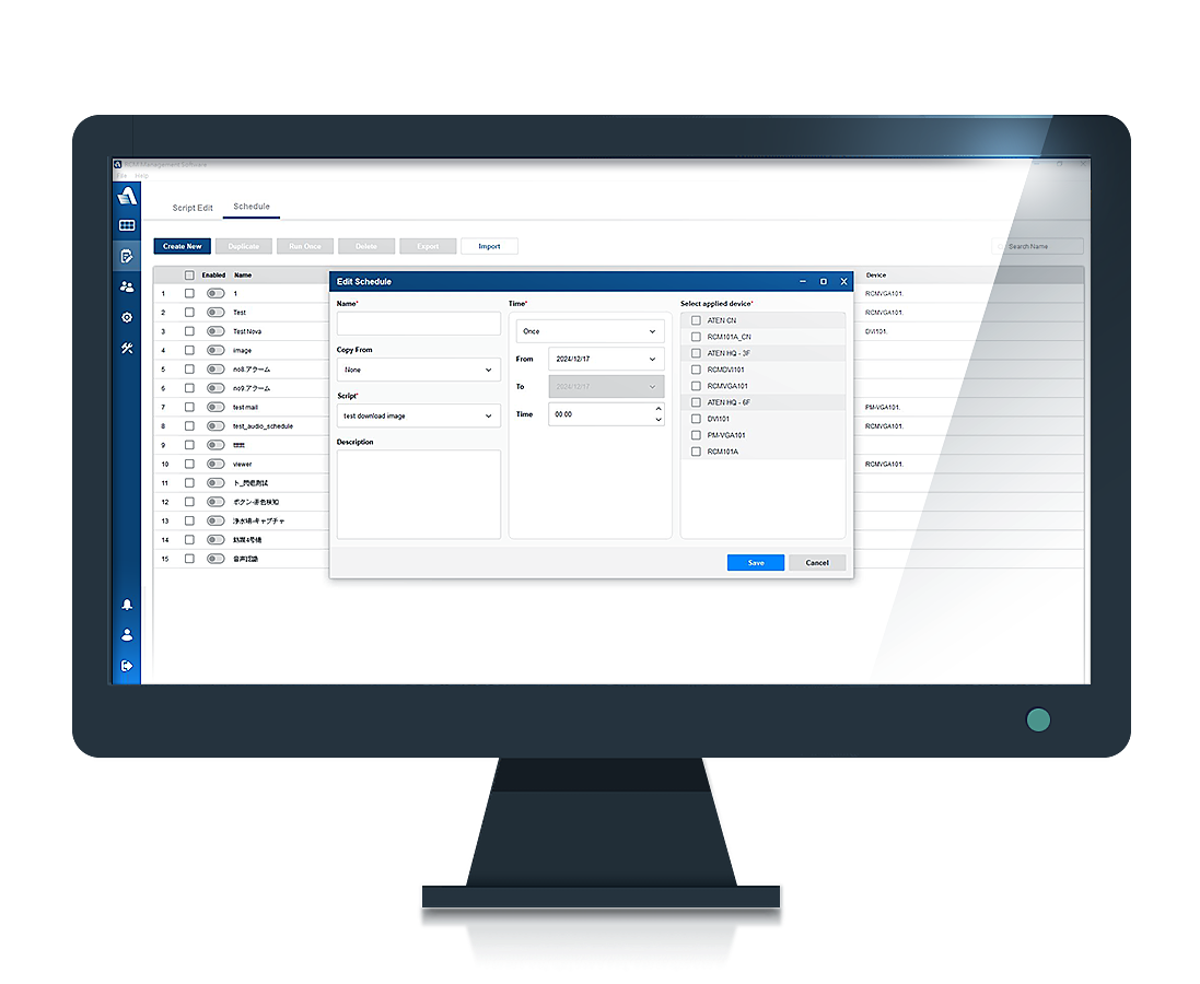 The ATEN RCMMS is a Windows-based management software that offers convenient, centralized access, monitoring, and customizable control for multiple RCM devices within a network. By consolidating various RCM devices—including KVM over IP extenders (e.g., RCMDVI00AT) and both single-port (e.g., RCMVGA101) and multi-port KVM over IP switches (e.g., RCM416)—RCMMS meets the needs of administrators seeking efficient management of IT infrastructures, even across isolated and secure environments.